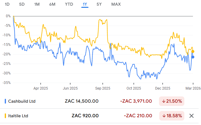 Although Cashbuild (JSE: CSB) doesn’t have a manufacturing arm like Italtile, both options have sucked over the past year in the market: