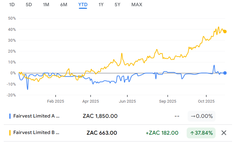 Looking ahead to 2026, the fund expects the B shareholders to enjoy growth of between 9% and 11%. At the mid-point of guidance, that’s another year of double-digit returns to investors. When times are good in the property sector, you would far rather be holding Fairvest B shares than Fairvest A shares: