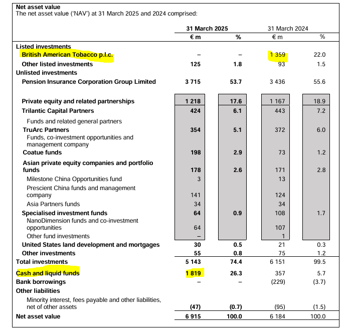 It’s worth looking at this net asset value summary, as it represents a new era in which the British American Tobacco stake was transformed into a huge cash pile instead:
