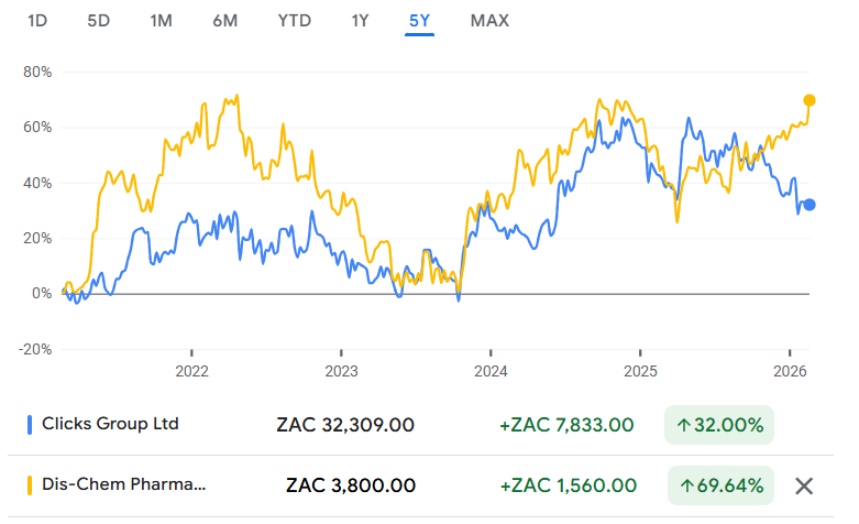This is a seriously impressive performance. A gap has now opened up between the Dis-Chem and Clicks (JSE: CLS) share prices: