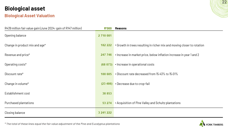 One of the biggest contributors to the earnings volatility is of course the fair value changes in the biological assets themselves. York Timber is required to estimate the future value of the trees and then adjust for those forecast movements in its financials. This is why they also report core earnings per share, which strips out the fair value moves.
