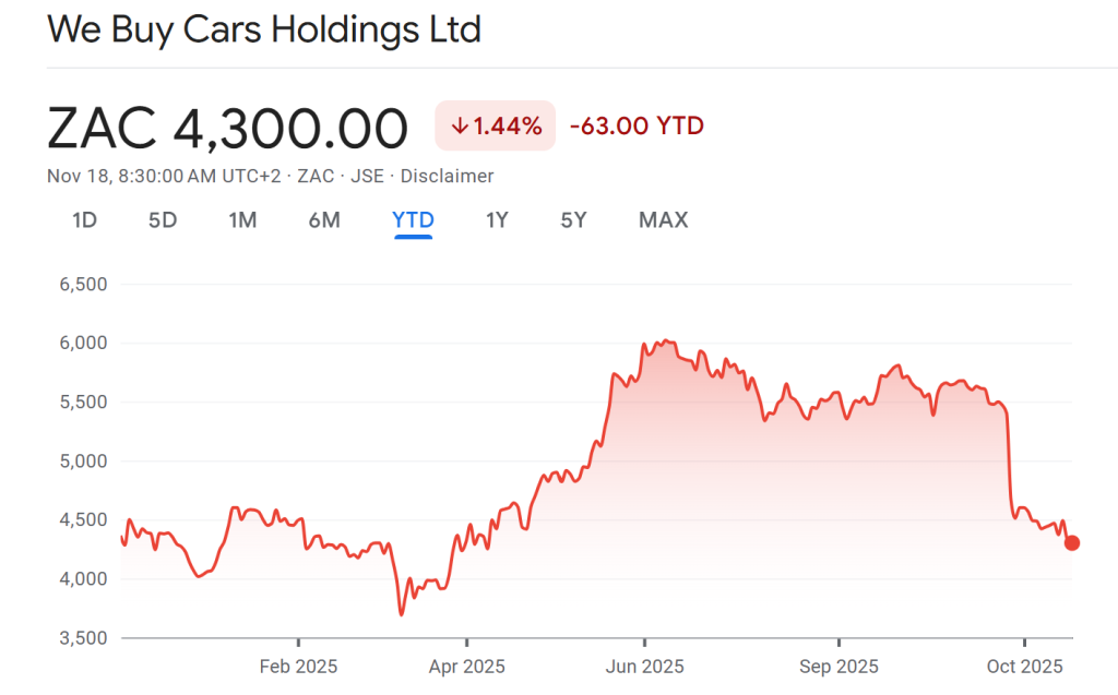 For the year ended September, WeBuyCars grew revenue by 13.1% and core headline earnings by 15%. Unfortunately, due to share issuances at the time when WeBuyCars was cut loose from the festering wounds of Transaction Capital, core HEPS is only up by 3.3%.