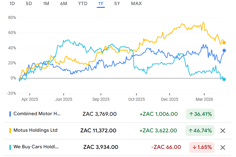 It gets even more interesting if you compare CMH to its two main rivals over the past 12 months. WeBuyCars (JSE: WBC) has struggled with its premium valuation, while Motus (JSE: MTH) has made the most of its vertically integrated model: